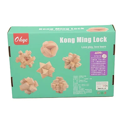 🪵 6 Unique Wooden Puzzles – Each puzzle is different in shape and challenge level, from interlocking blocks to twisty brainteasers.